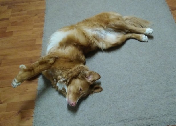Ayu lässt es sich sichtlich in Tollerpose gut gehen, während ich einen Science-Vortragsmarathon absolviere. Wissenschaftler und Experten verschiedener Themen rund um den Hund präsentieren ihre Erkenntnisse und die theoretischen Hintergründe auf höchstem Niveau.